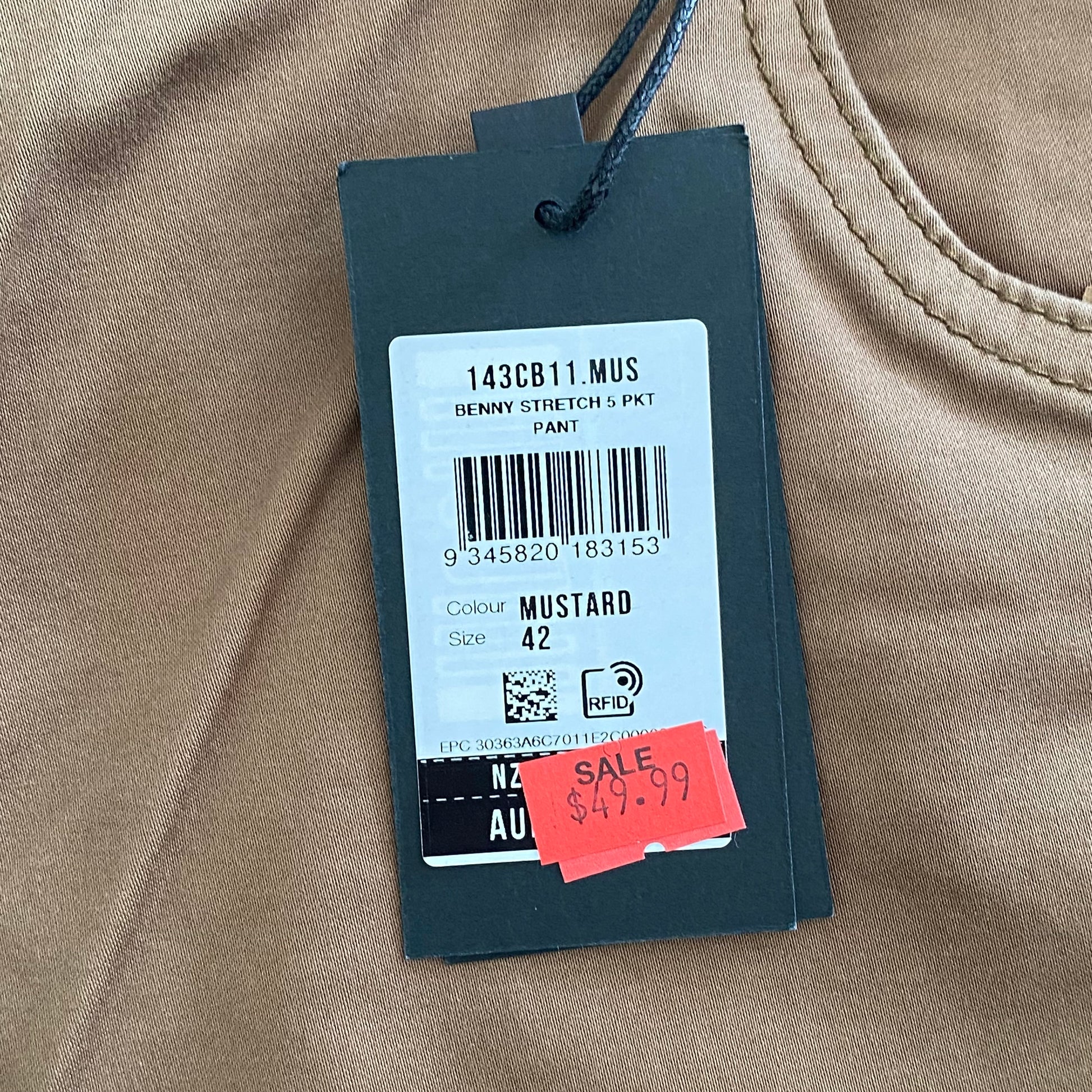 Tarocash Men’s Pants Mustard Sz 42-inch Waist Regular Zip Fly New With Tags