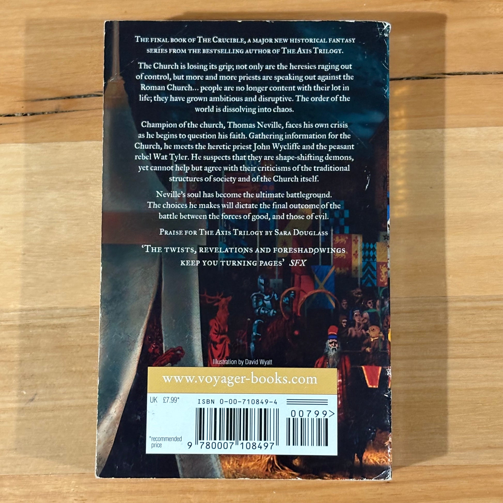 Champion of the church, Thomas Neville, faces his own crisis as he begins to question his faith. Gathering information for the Church, he meets the heretic priest John Wycliffe and the peasant rebel Wat Tyler. He suspects that they are shape-shifting demons, yet cannot help but agree with their criticisms of the traditional structures of society and of the Church itself.
