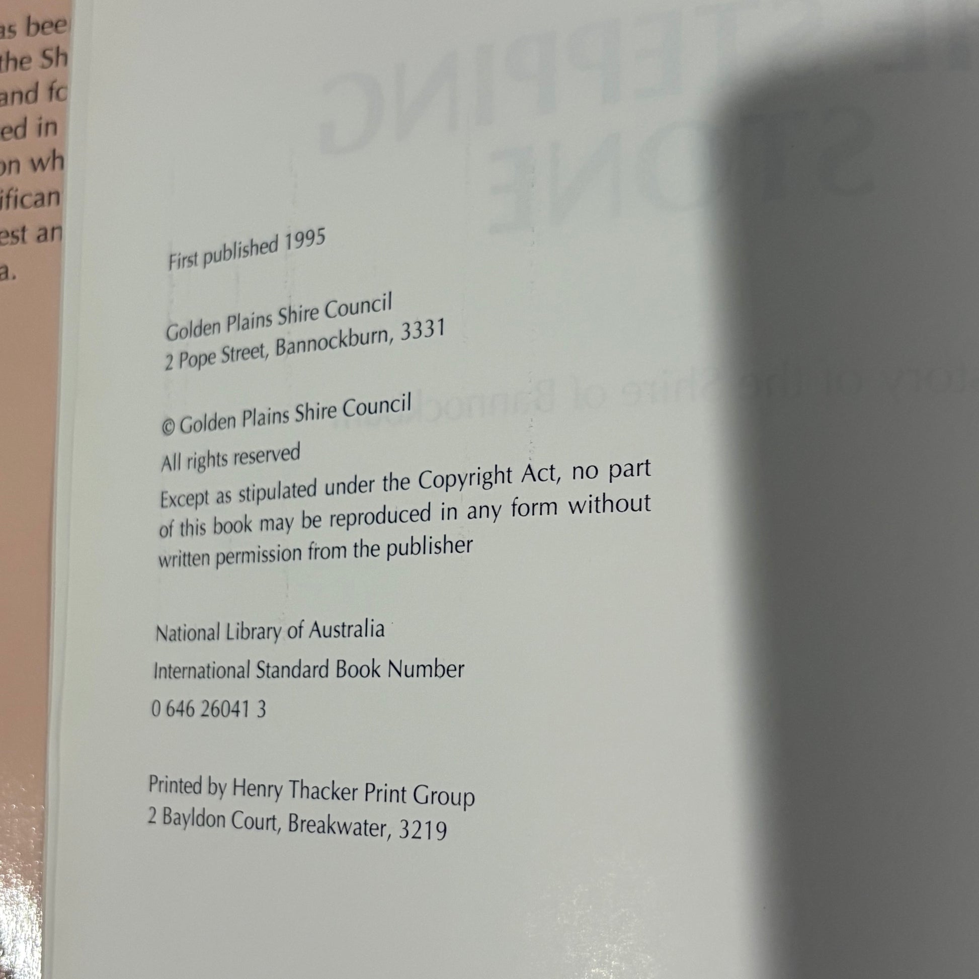 The Stepping Stone A History of the Shire of Bannockburn by Derek Beaurepaire 1995